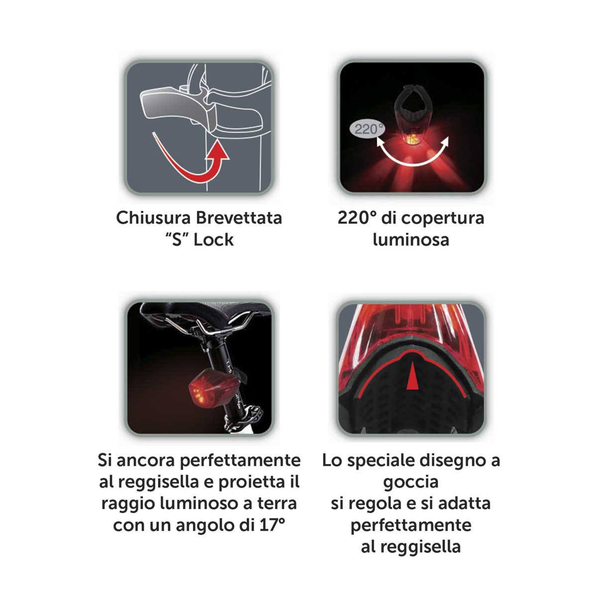 Val op in de schemering en het donker, voor je eigen veiligheid en die van je medeweggebruikers. Dit achterlicht met 3 LEDs werkt op een via de meegeleverde USB kabel op te laden accu en schijnt 220 graden breeduit vanonder je zadel. Het lichtje weegt 41 gram en kan zowel in de knipperstand (feitelijk niet toegestaan) als in standlicht en soft beam functie worden ingeschakeld. Het achterlicht haakt met de flexibele siliconen band rond zadelbuis of zadelpen.