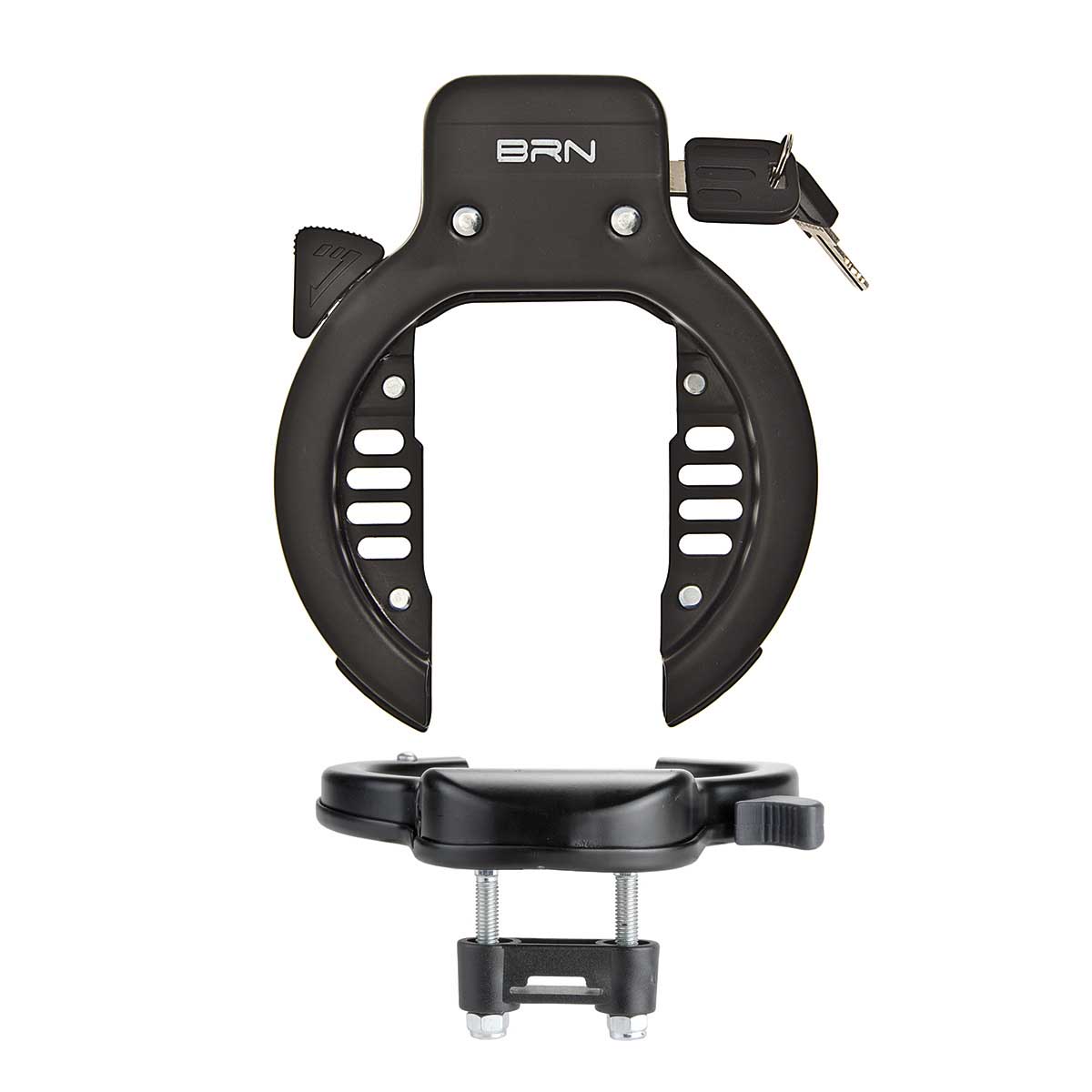Sterk stalen ringslot voor montage op het frame. Inclusief 2 sleuteltjes en 2 boutjes voor de montage. Let op, dit slot heeft geen ART vermelding en is daardoor niet geaccepteerd door de verzekering.