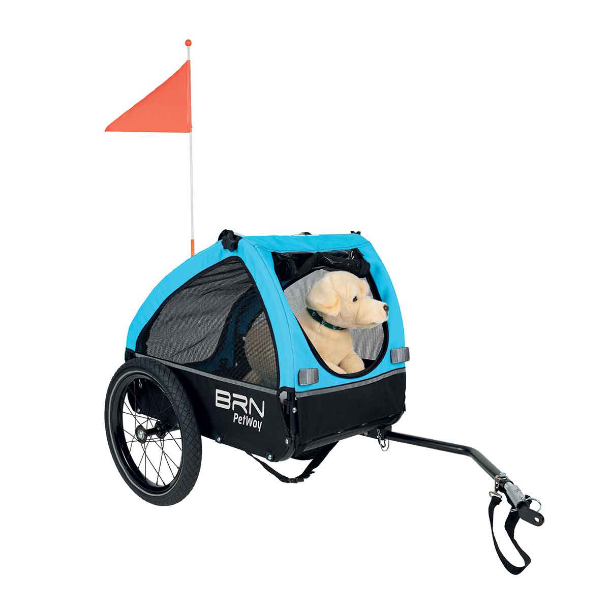 De trolley is voorzien van een transparant, regenbestendig en oprolbaar scherm, zodat je hond goed zicht heeft en beschermd blijft tegen weersinvloeden. Voor extra zichtbaarheid en veiligheid zijn er reflectors aan zowel de voor- als achterkant. Het sterke stalen frame met scharnierende arm zorgt voor stabiliteit en een soepele besturing. Binnenin bevindt zich een duurzaame PE vloer, wat het in- en uitstappen vergemakkelijkt. Aan alle zijden is een insectenwerend net aangebracht voor optimale ventilatie en bescherming. De hondentrolley wordt geleverd met een veiligheidsriem en een veiligheidsvlag voor extra zekerheid en zichtbaarheid onderweg.