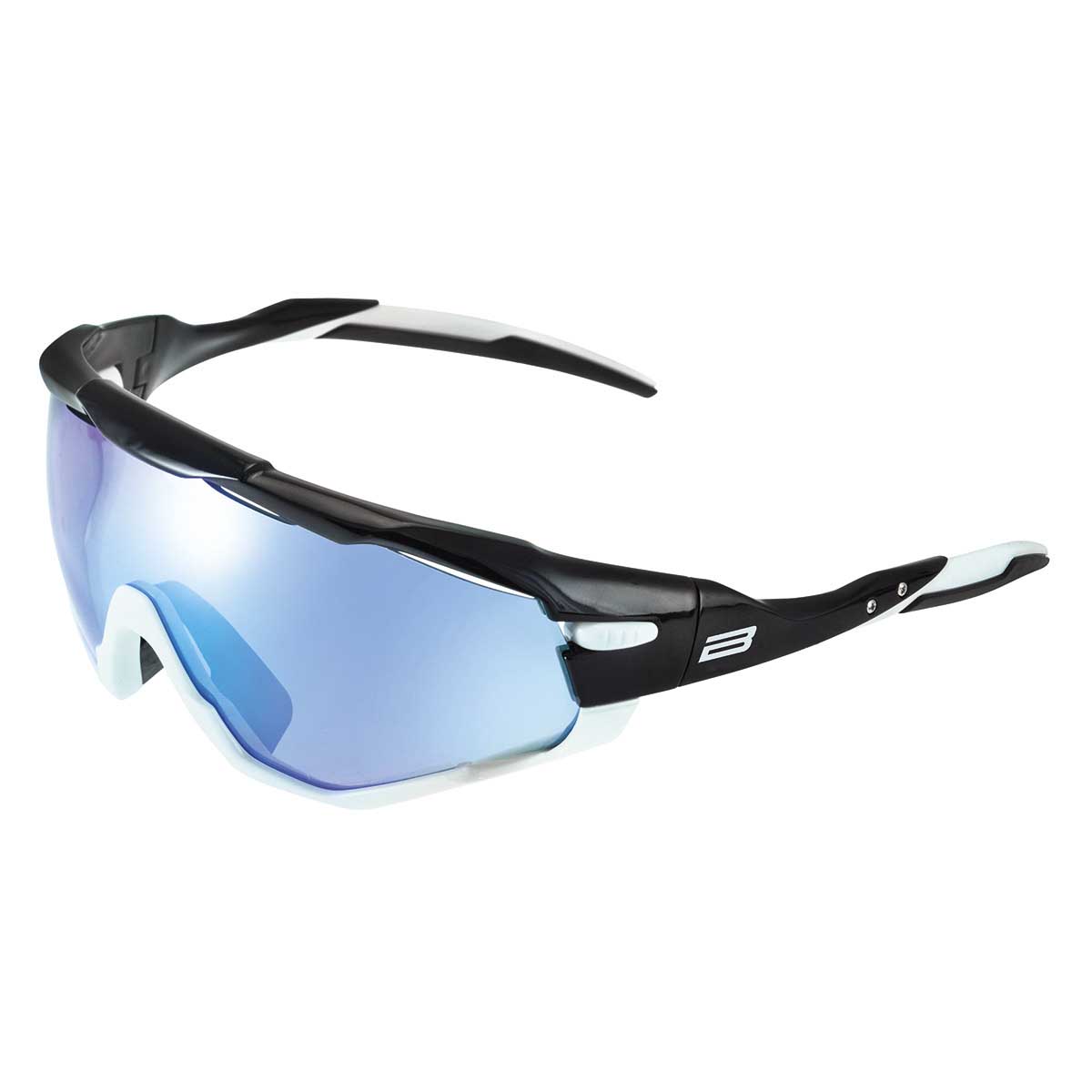 Comfortabele fietsbril met 3 sets glazen: helder, donker en spiegeleffect blauw/wit. UV400 bescherming, hypoallergeen en slechts 36 gram.