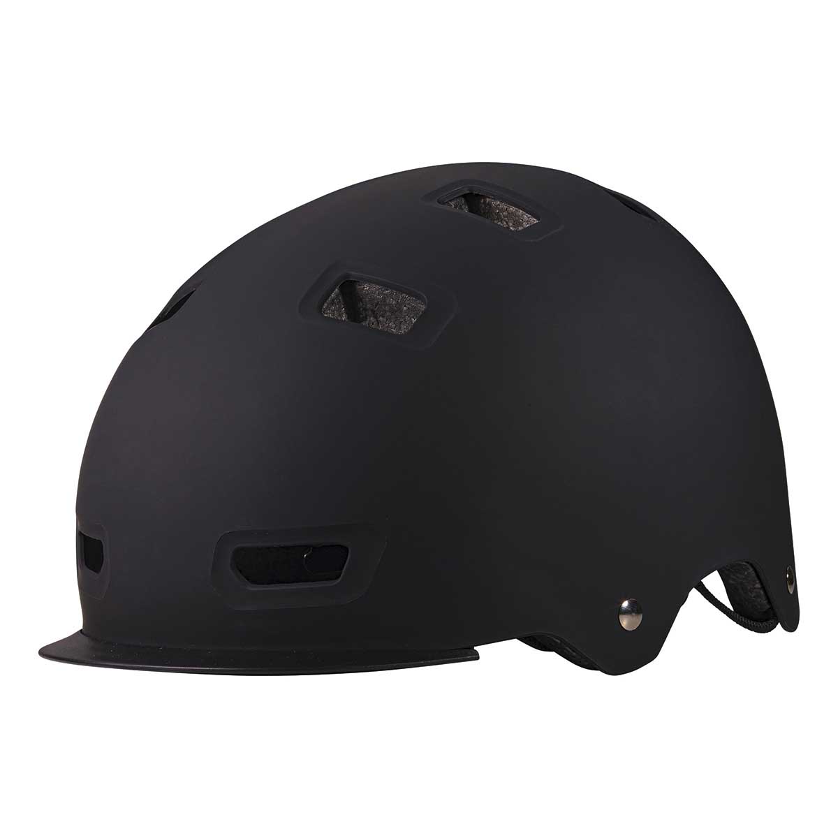 Urban style fietshelm in twee maten (M 52-58 cm en L 58-65 cm) met Roller pas-systeem, 10 ventilatieopeningen en klein zonneklepje. ABS+EPS schelp.