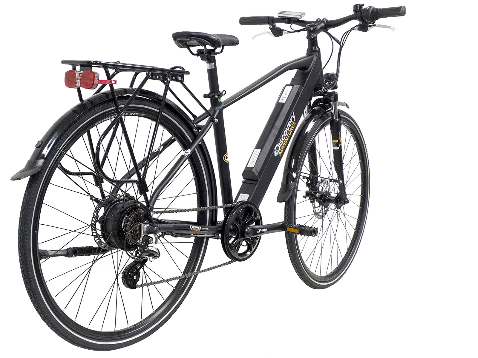 Met de Discovery E8200 is het heel gemakkelijk om je omgeving te ontdekken. Dankzij de elektrische trapondersteuning met 6 niveaus kun je naar wens zonder veel inspanning grote afstanden afleggen of er juist voor kiezen om vooral zelf te trappen. De 11.6 Ah accu is uitneembaar en ook buiten de fiets op te laden. In het gunstigste geval, dat wil zeggen met veel eigen inbreng, wind mee en weinig bagage, kan de elektrisch ondersteunde actieradius zo’n 80 kilometer bedragen. Omdat de fiets is voorzien van een soepel schakelende Shimano Altus derailleur en 7 versnellingen kun je er ook zonder trapondersteuning heerlijk mee toeren.