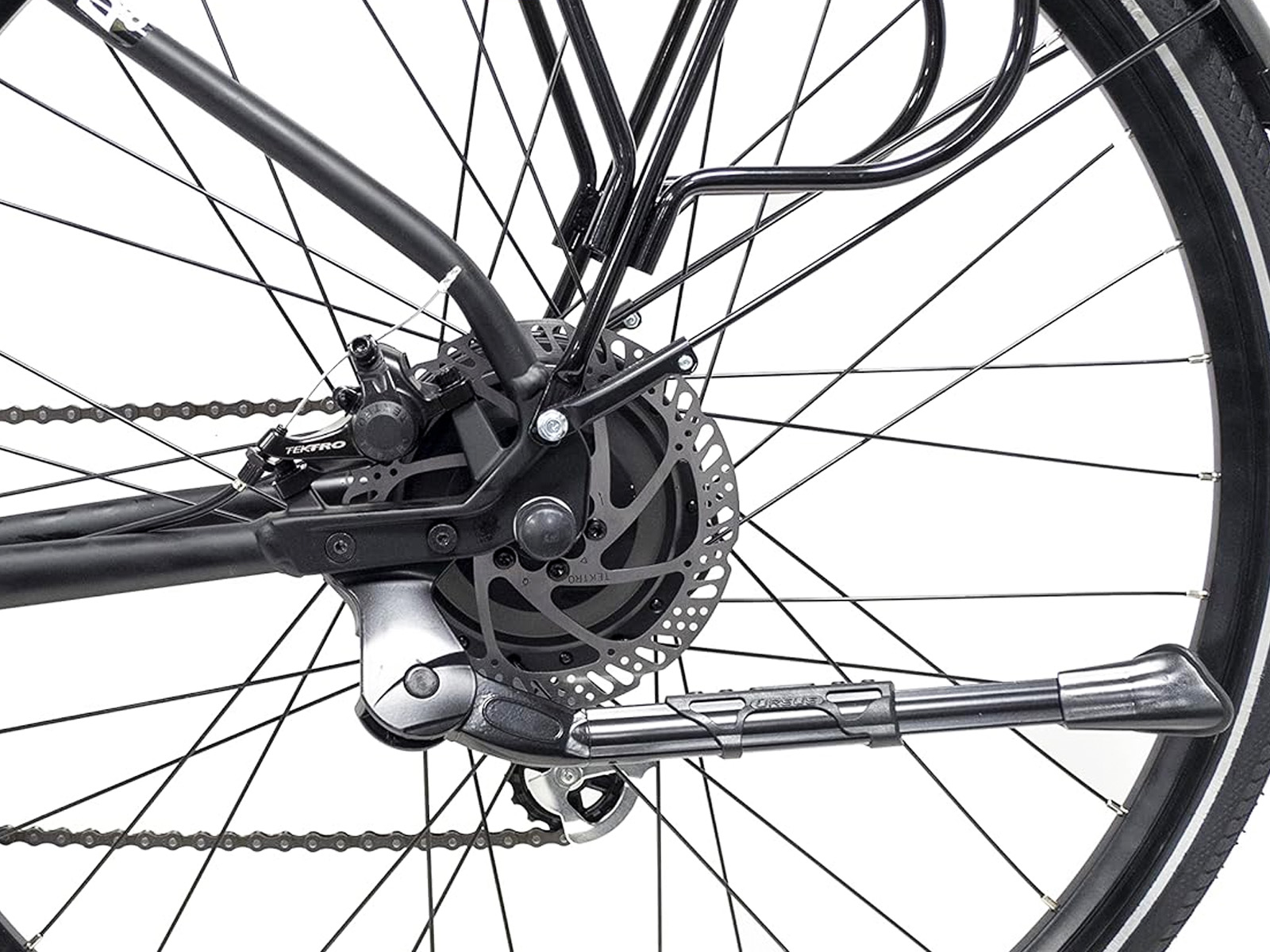 Het informatieve LCD scherm op het stuur toont o.a. je snelheid, afgelegde afstand en de status van de accu. Je stelt er de ondersteuningsstand mee in en activeert desgewenst de Walk Assist functie. De fiets is opgebouwd met voornamelijk lichtgewicht aluminium delen, waardoor het fietsgewicht onder de 22 kilo blijft, inclusief de accu. De MXUS achterwielmotor levert 34 Nm trekkracht, die je met de schijfremmen in voor- en achterwiel kunt beteugelen. BIj het gebruik van de remmen wordt de motorondersteuning direct onderbroken.