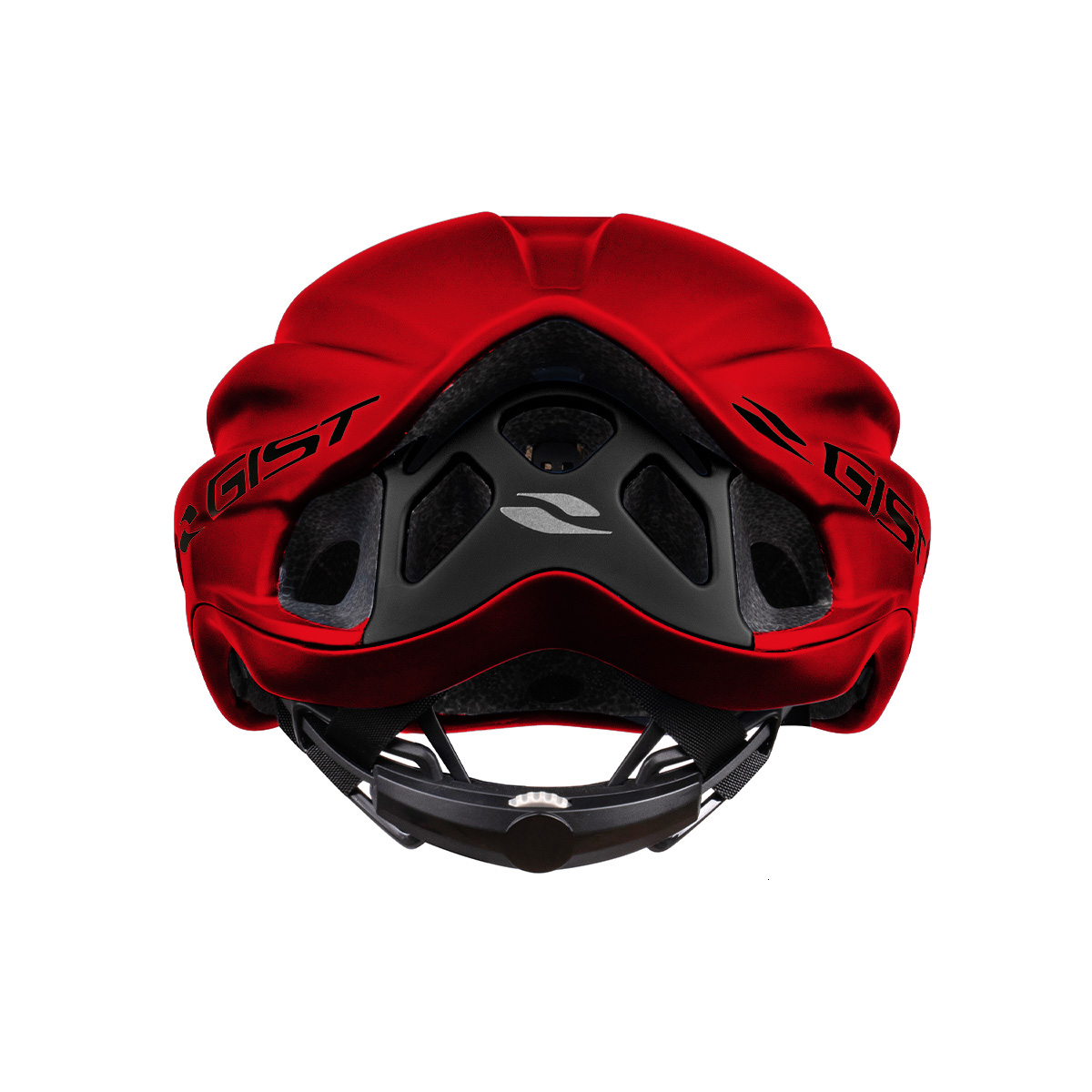 Aerodynamische fietshelm van Polycarbonaat met Polystyreen binnenwerk, 14 ventilatieopeningen en magnetische sluiting.