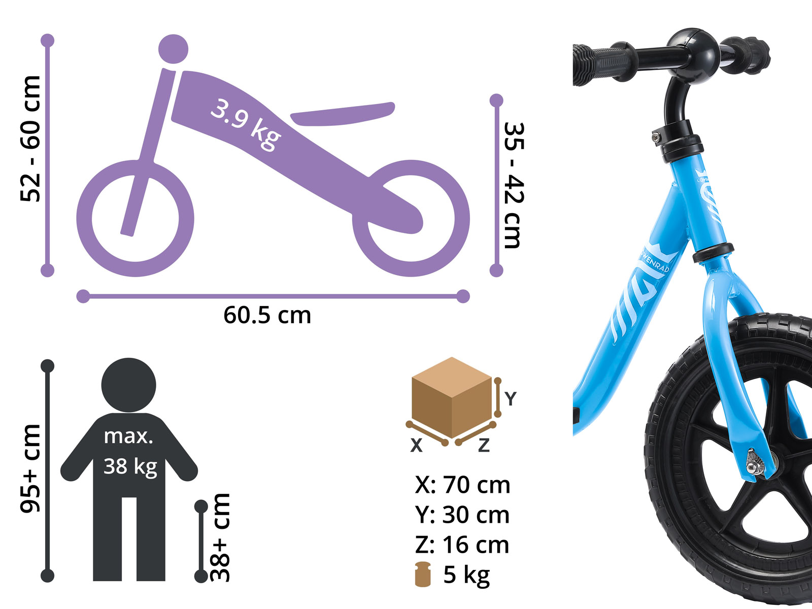 Lichtgewicht loopfiets met staplank en 12 inch antilek wielen. Om mee te steppen of te gebruiken als loopfiets. Leeftijd vanaf 3 jaar.