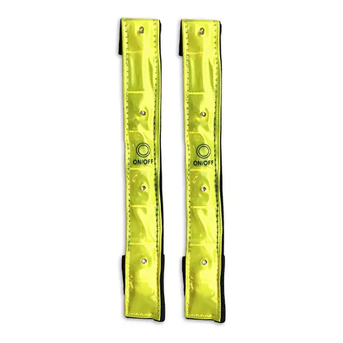 Set van vier reflecterende armbandjes met LED verlichting, twee standen. Inclusief batterijen. Klittenbandsluiting past altijd.