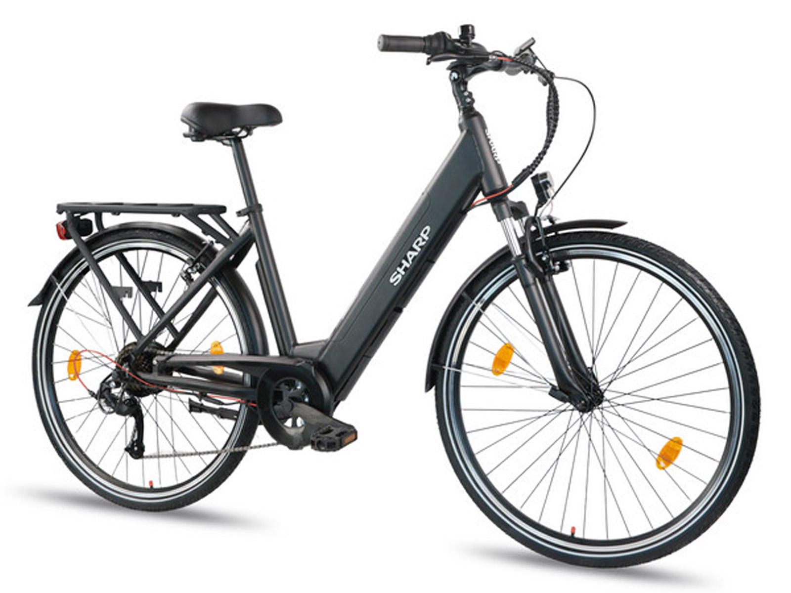 Deze elektrische stadsfiets is uitgerust met een ingebouwde accu voor een bruikbare actieradius, ideaal voor dagelijks woon-werkverkeer en weekendtripjes. De lage instap maakt het makkelijk om op en af te stappen en de grote wielen garanderen een stabiele en comfortabele rit. De geveerde voorvork dempt hobbels effectief en de 7 versnellingen derailleur zorgt voor een soepele rit onder alle omstandigheden.