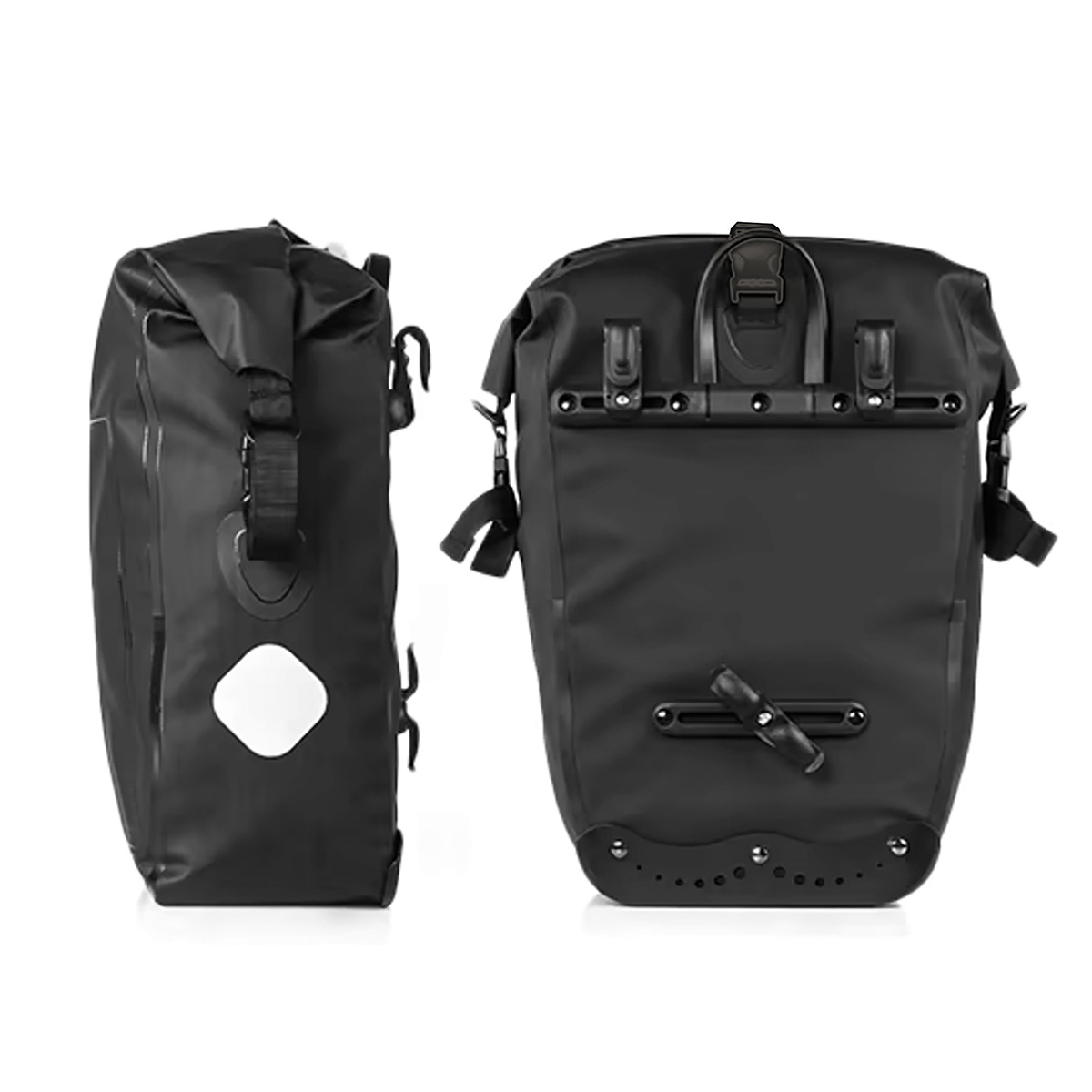 Deze ruime roll-up city bag is gemaakt van 600D nylon met TPU-gelamineerde binnenkant. De naadloos gelaste constructie is 100% waterdicht, de binnenkant is versterkt met een PVC-profiel dat de tas stabiliseert en de lading beschermt tegen mogelijke schokken. – Hoge weerstand tegen slijtage en scheuren – Bagagedrager bevestiging – Afmetingen 45 x 29 x 15,5 cm; inhoud 24 liter