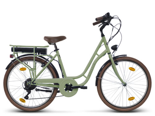**Klein maar fijn** Met de 26 inch wielen en een framehoogte van 46 cm is dit een compacte e-bike, bijzonder geschikt voor kleinere mensen, maar door zadel en stuur te verstellen vinden ook mensen met een gemiddelde lengte een fijne zithouding. De prestaties van dit met V-brakes uitgeruste model zijn dankzij de 417 Wh accu en 30 Nm achterwielmotor zeker niet ondermaats. Deze e-bike is een echte eye-catcher waarmee je gemakkelijk even de stad in fietst om te shoppen of een terrasje te pakken. Maar ook voor de rit naar school of werk heb je er een prima fiets aan.